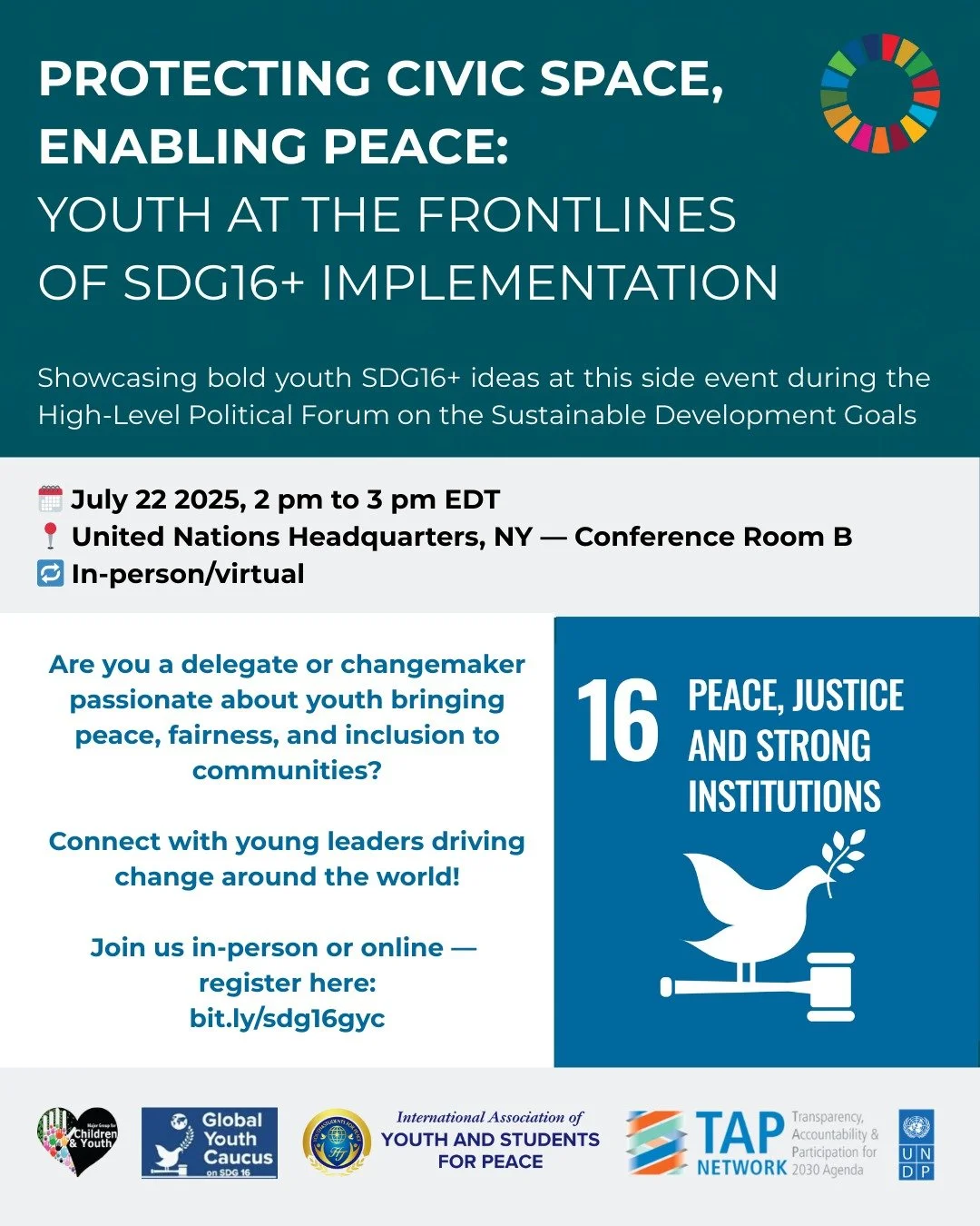 HLPF Side-Event: Protecting Civic Space, Enabling Peace: Youth at the Frontlines of SDG16+ Implementation